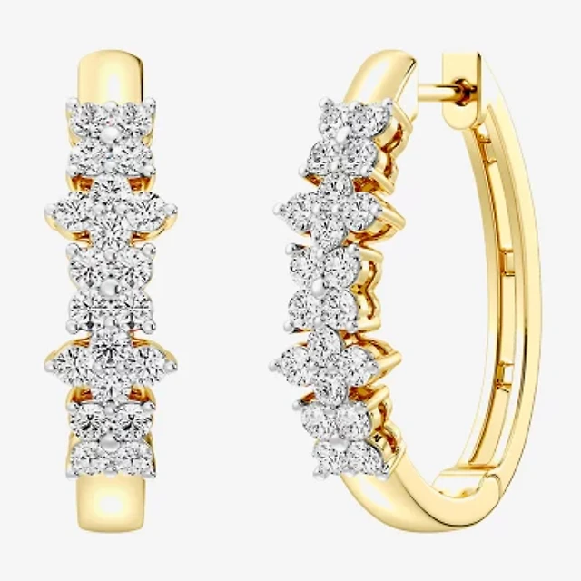 (H / I1-I2) Womens 1 CT. T.W. Lab Grown White Diamond 14K Gold Over Silver 28.2mm Hoop Earrings
