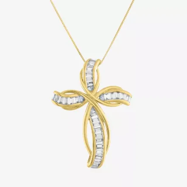 (G-H / Si2-I1) Womens 1/10 CT. T.W. Lab Grown White Diamond 14K Gold Over Silver Sterling Silver Cross 18 Inch Pendant Necklace