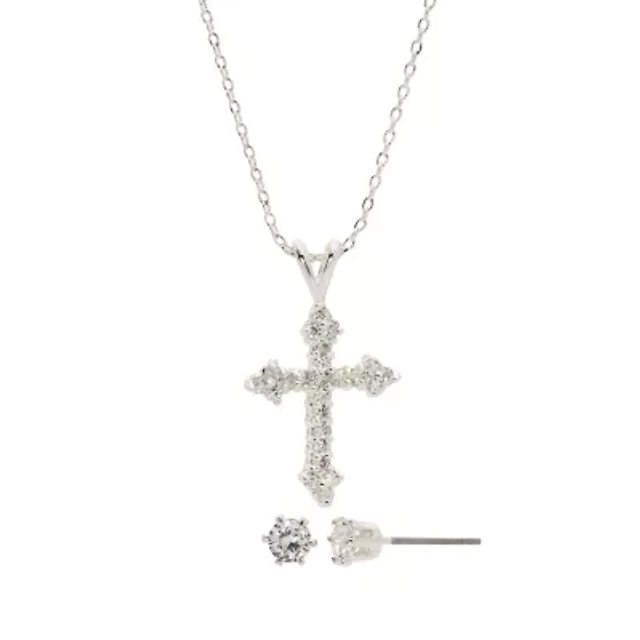 Sparkle Allure Womens 1 1/2 CT. T.W. Cubic Zirconia Pure Silver Over Brass Cross 2-pc. Jewelry Set