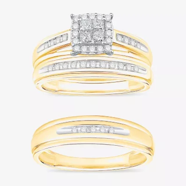 (I / Si1) 3PC Trio Set Featuring 1/2 CT. T.W. Lab Grown White Diamond 10K Two Tone Gold Marquise Side Stone Bridal Set