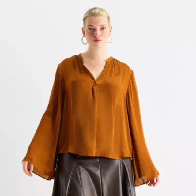 Worthington Womens Split Crew Neck 3/4 Sleeve Blouse