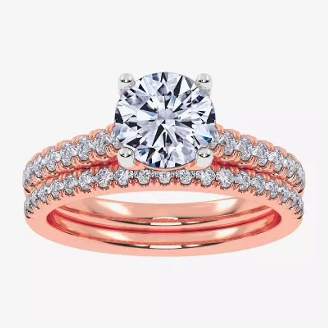 Womens 1 CT. T.W. Natural White Diamond 14K Gold Round Side Stone Halo Bridal Set