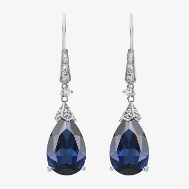 Sterling Silver Lab-Created Blue Sapphire Drop Earrings