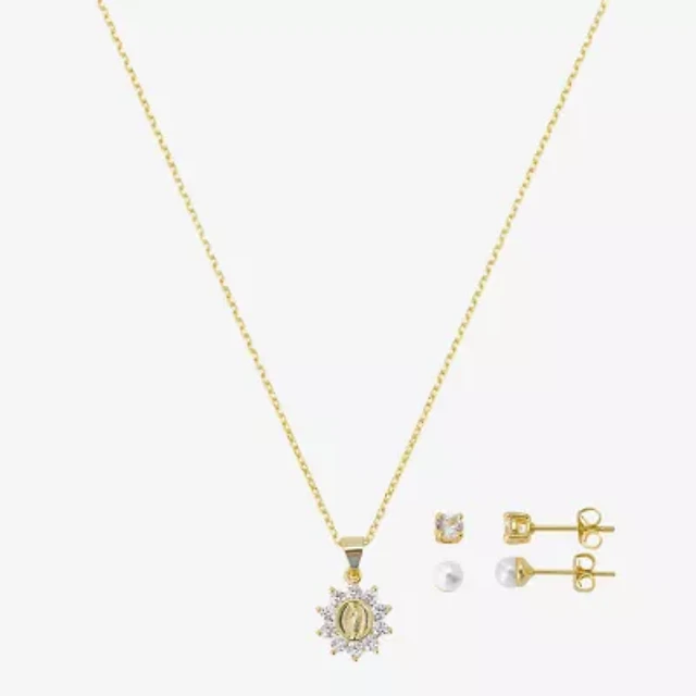 Gratitude & Grace Virgin Mary Our Lady Of Guadalupe Girls Cubic Zirconia 14K Gold Over Brass Round 3-pc. Jewelry Set