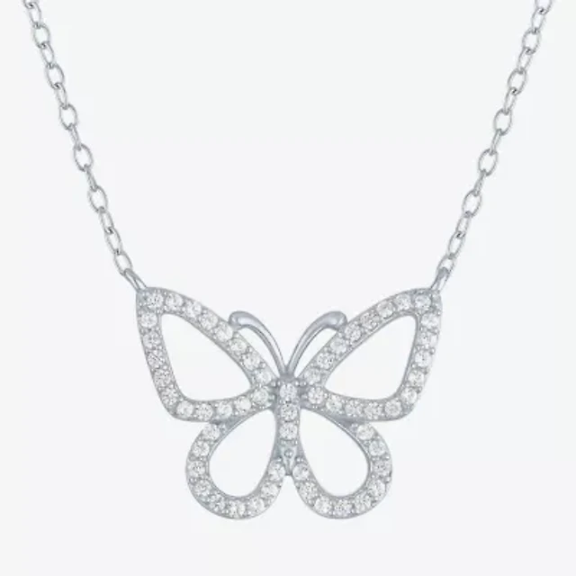 Yes, Please! Womens Lab Created White Sapphire Sterling Silver Butterfly Pendant