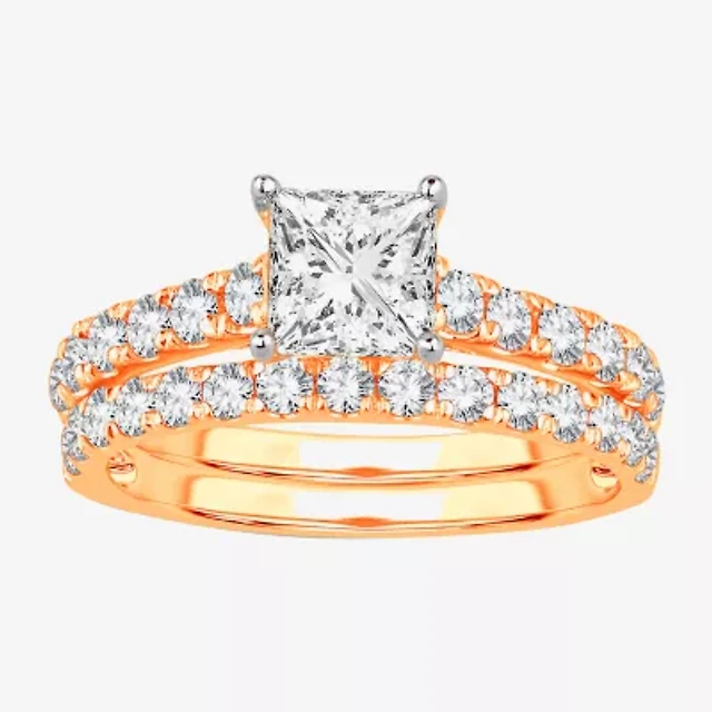 (G / Si2) Womens 2 CT. T.W. Lab Grown White Diamond 10K Gold Side Stone Bridal Set