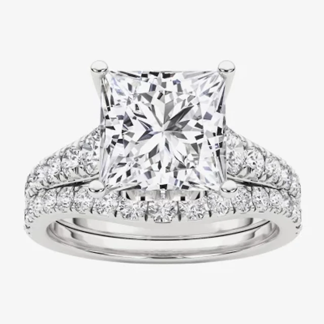 Grown Gorgeous Womens 4 CT. T.W. Lab White Diamond 14K Gold or Platinum Emerald-cut Side Stone Bridal Set