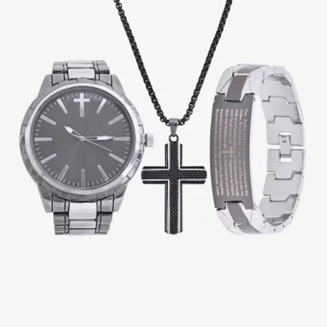 Lord'S Prayer Mens Two Tone 3-pc. Watch Boxed Set Mac7111jc