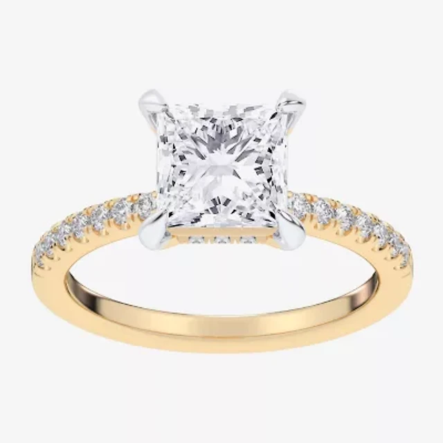 (I / I1) Womens 2 CT. T.W. Lab Grown White Diamond 10K Gold Side Stone Halo Engagement Ring