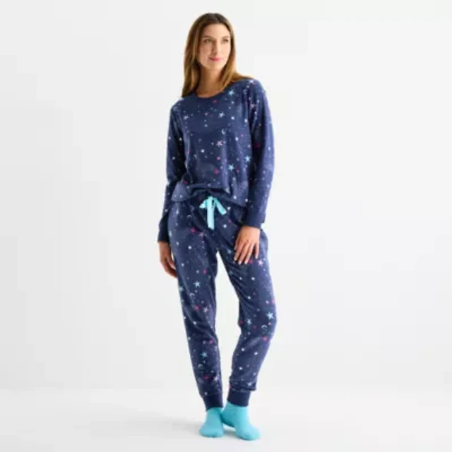 Adonna Womens Fleece Long Sleeve 2-pc. Plus Pajama Sets