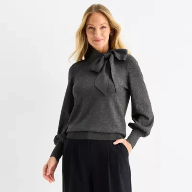 Liz Claiborne Womens Split Tie Neck Short Sleeve Blouse