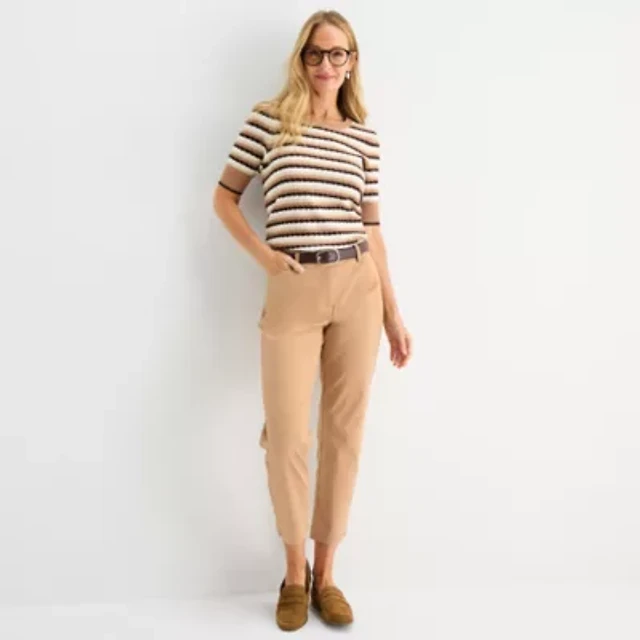 St. John's Bay Womens Crew Neck Short Sleeve Striped Pullover Sweater