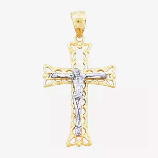 Womens 1/10 CT. T.W. Lab Grown White Diamond 10K Two Tone Gold Cross 18 Inch Pendant Necklace