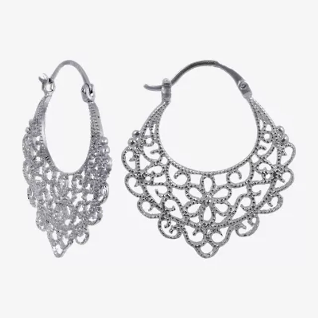 Womens Sterling Silver 30.5mm Heart Hoop Earrings