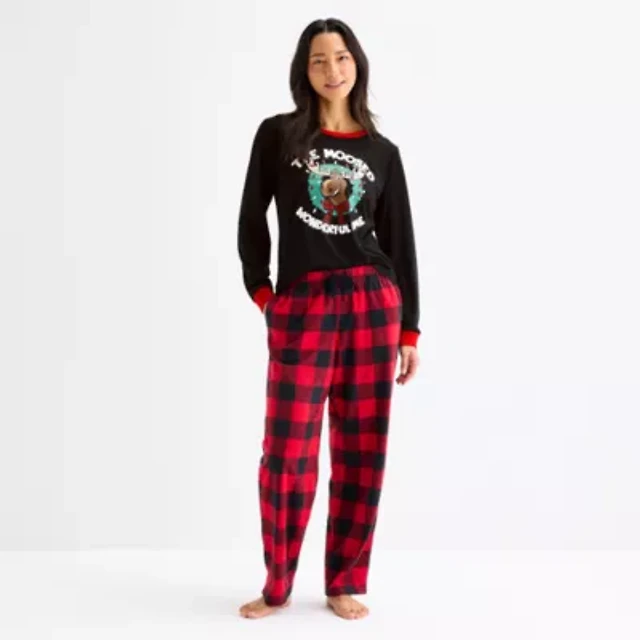 North Pole Trading Co. Moose Buffalo Womens Crew Neck Long Sleeve 2-pc. Matching Family Pajama Sets