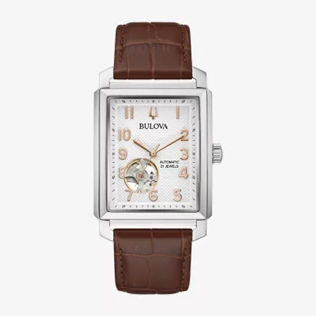 Bulova Classic Mens Automatic Brown Leather Strap Watch 96a268
