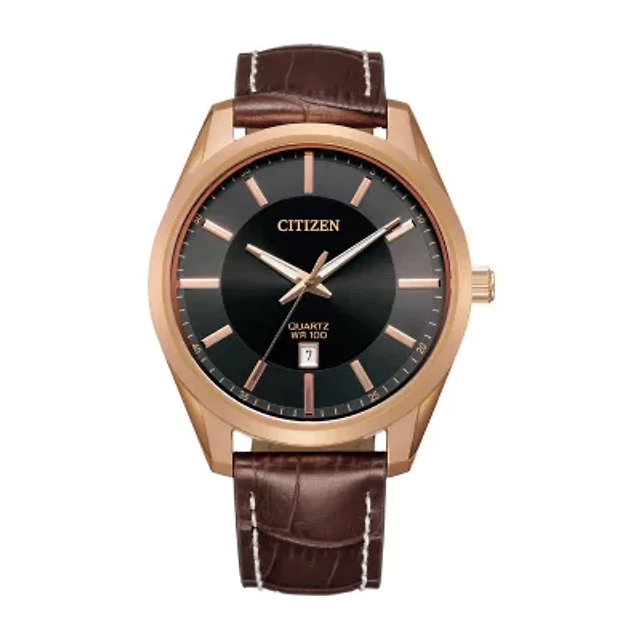 Citizen Quartz Mens Brown Leather Strap Watch Bf2003-25a