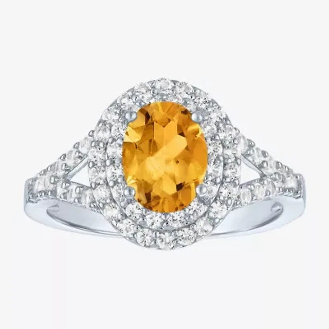 Gemstone and Lab-Created White Sapphire Sterling Silver Oval Double Halo Cocktail Ring