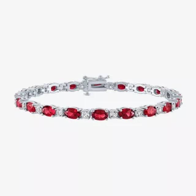 Gemstone Sterling Silver Oval 7.5 Inch Tennis Bracelet