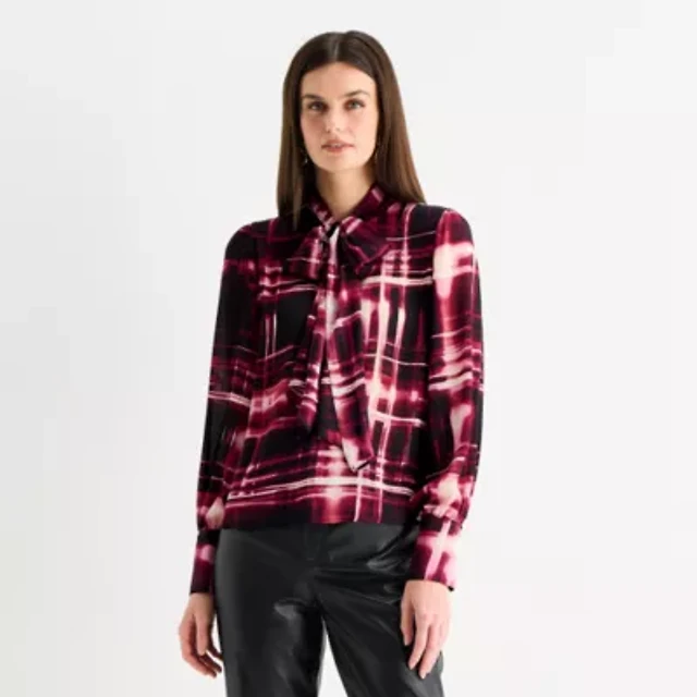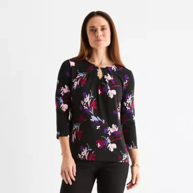 Worthington Womens Plus Henley Neck Short Sleeve Blouse