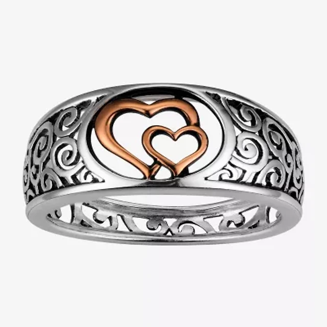 Footnotes Mother & Daughter Filigree Womens 3MM Sterling Silver Heart Band