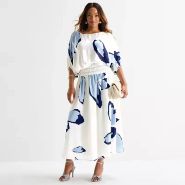 MSK Womens Short Sleeve Floral Midi Fit + Flare Dress
