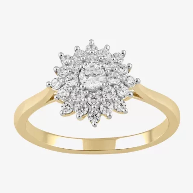 (H / I1-I2) Womens 1/2 CT. T.W. Lab Grown White Diamond 14K Gold Over Silver Cluster Cocktail Ring