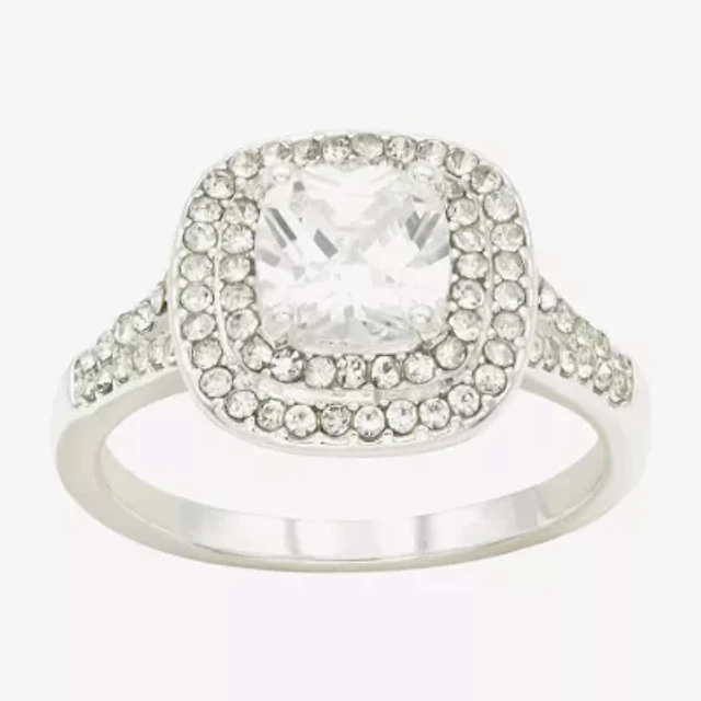 Sparkle Allure Womens Cubic Zirconia Pure Silver Over Brass Halo Engagement Ring