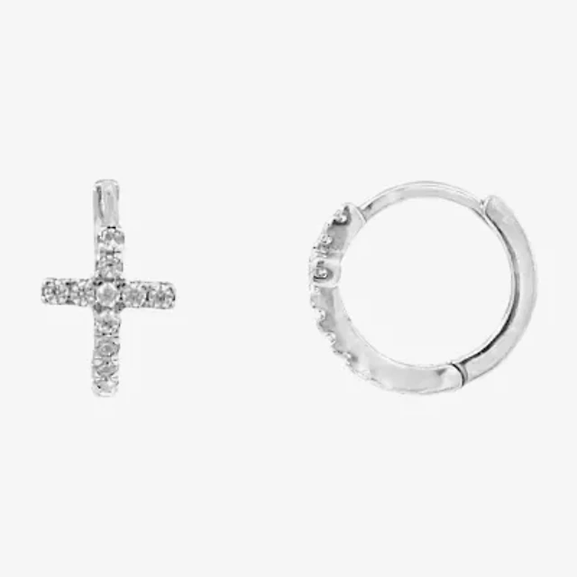 Yes, Please! Womens Lab Created White Sapphire Sterling Silver 16.1mm Hoop Earrings