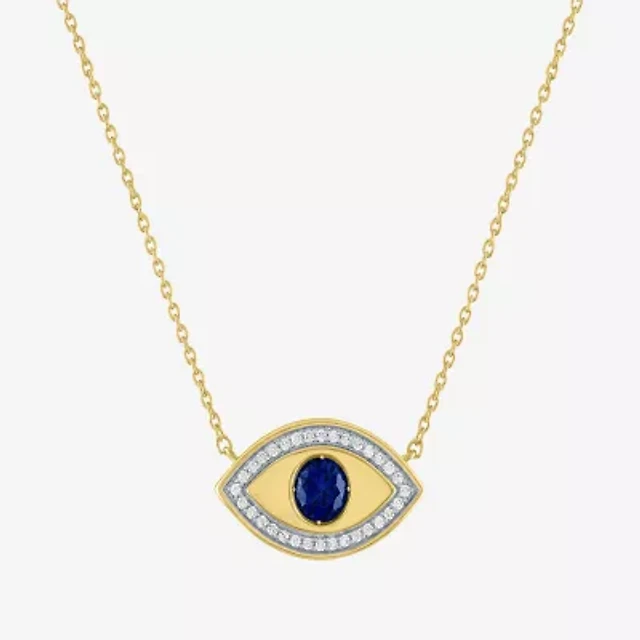 Diamond Addiction Womens 1/10 CT. T.W. Lab Created Blue Sapphire 14K Gold Over Silver Evil Eye 18 Inch Pendant Necklace