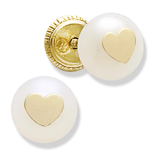 6MM Pearl Heart Stud Earrings 14K