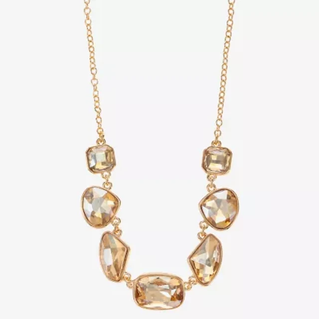 Monet Jewelry Gold Tone Frontal Womens Brown 17 Inch Collar Necklace