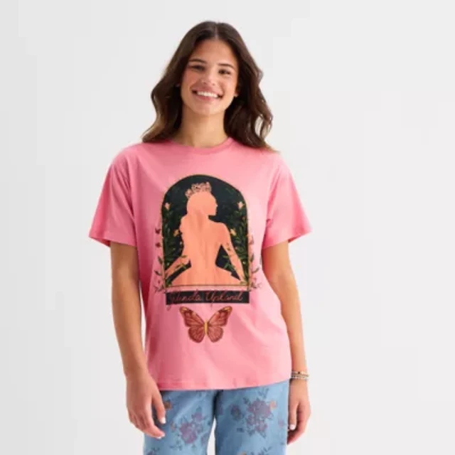Glinda Boyfriend Womens Juniors Crew Neck Short Sleeve Regular Fit Wicked Graphic T-Shirt