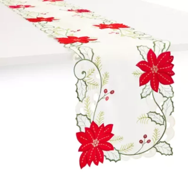 North Pole Tranding Co. Chenille Knit with Pom Pom Table Runner